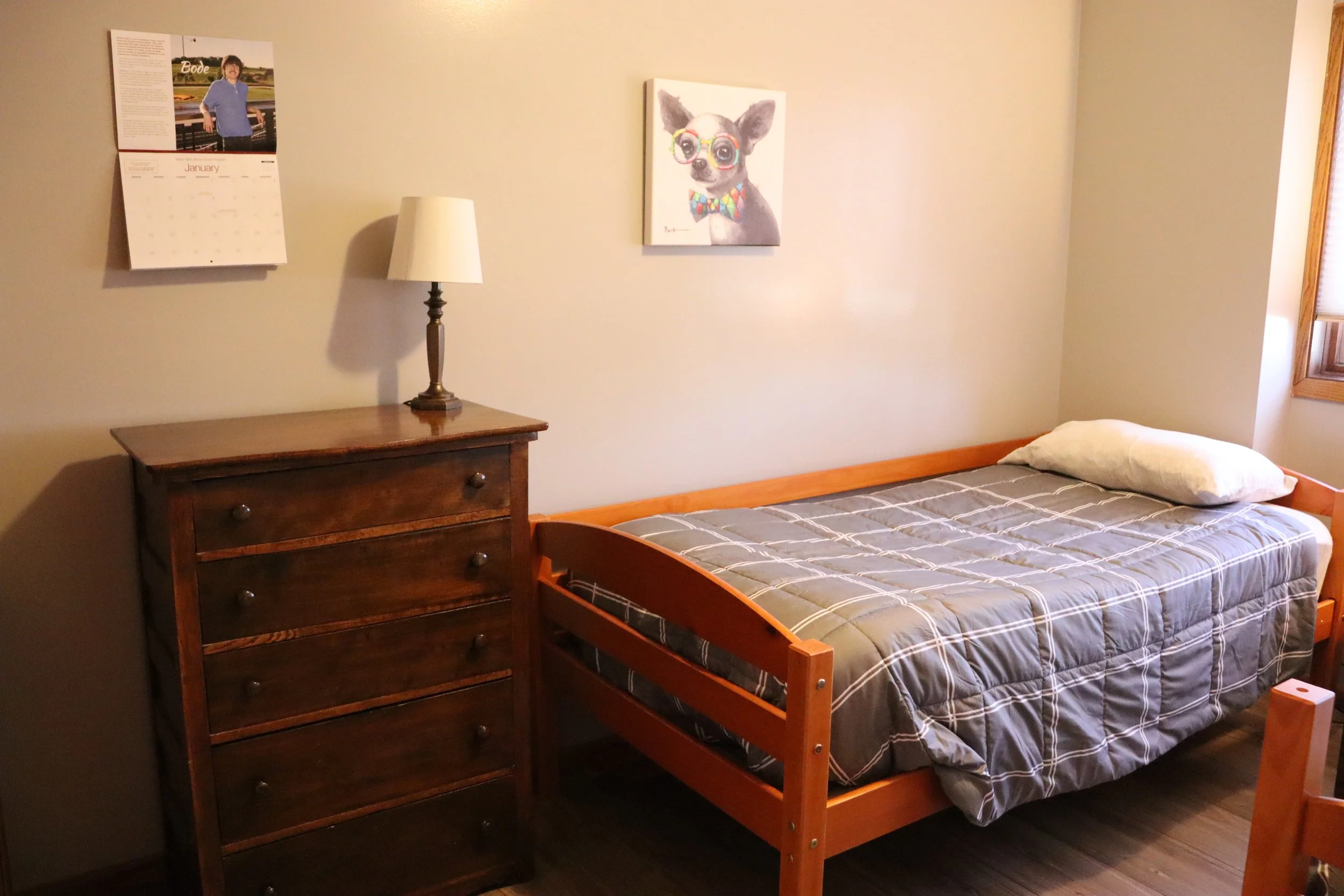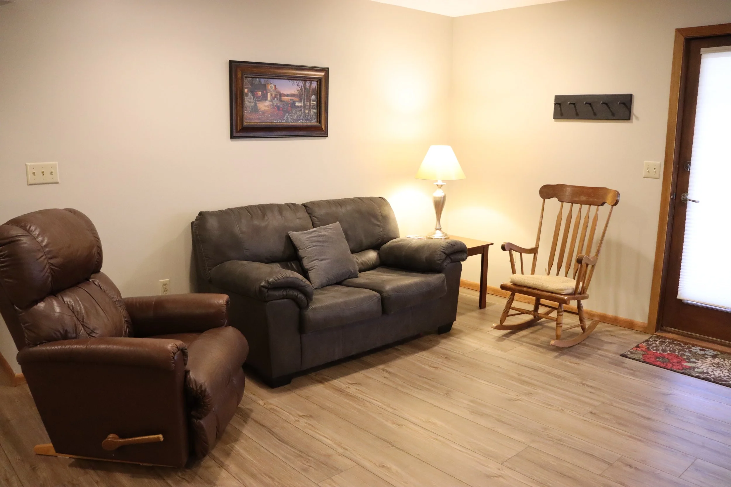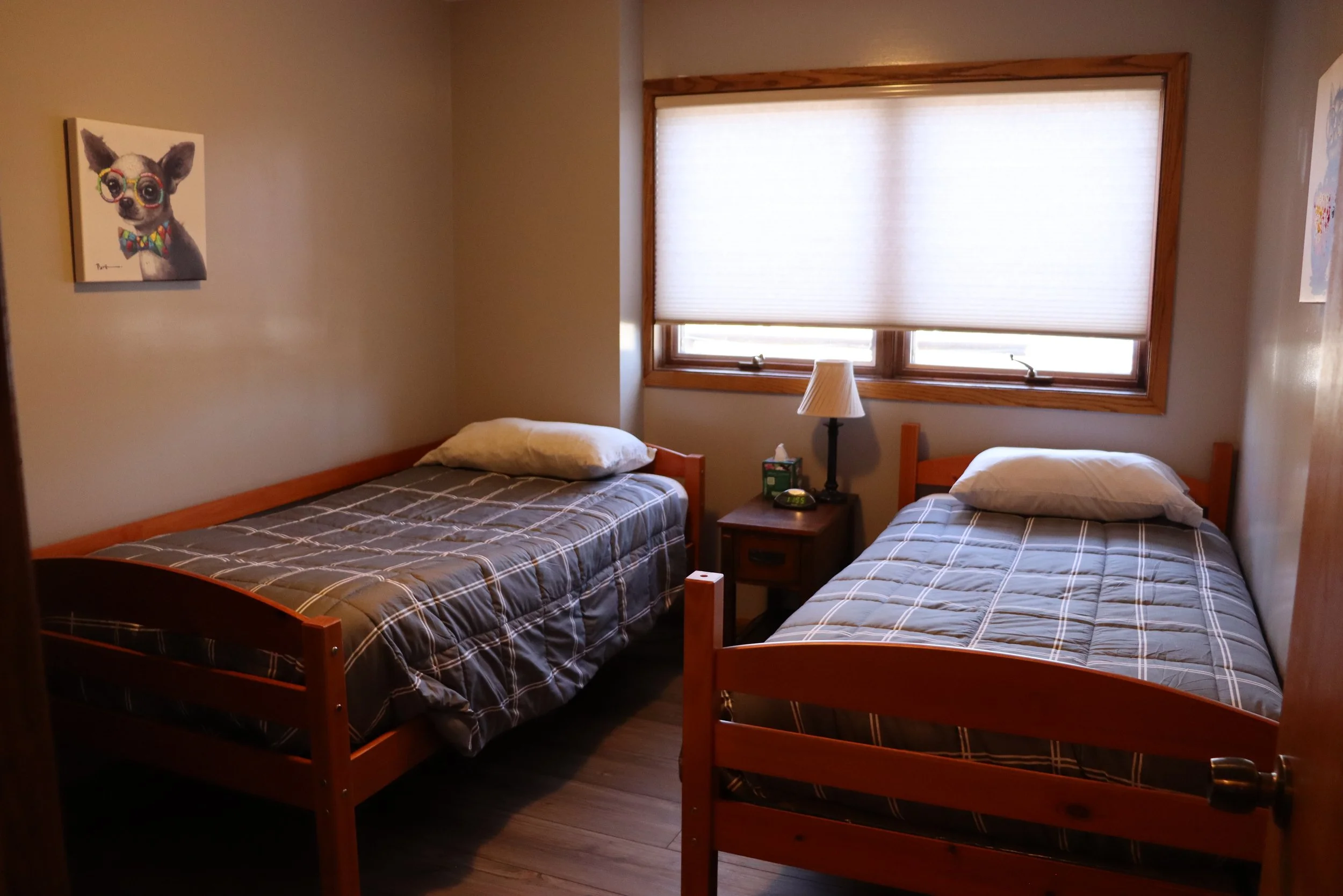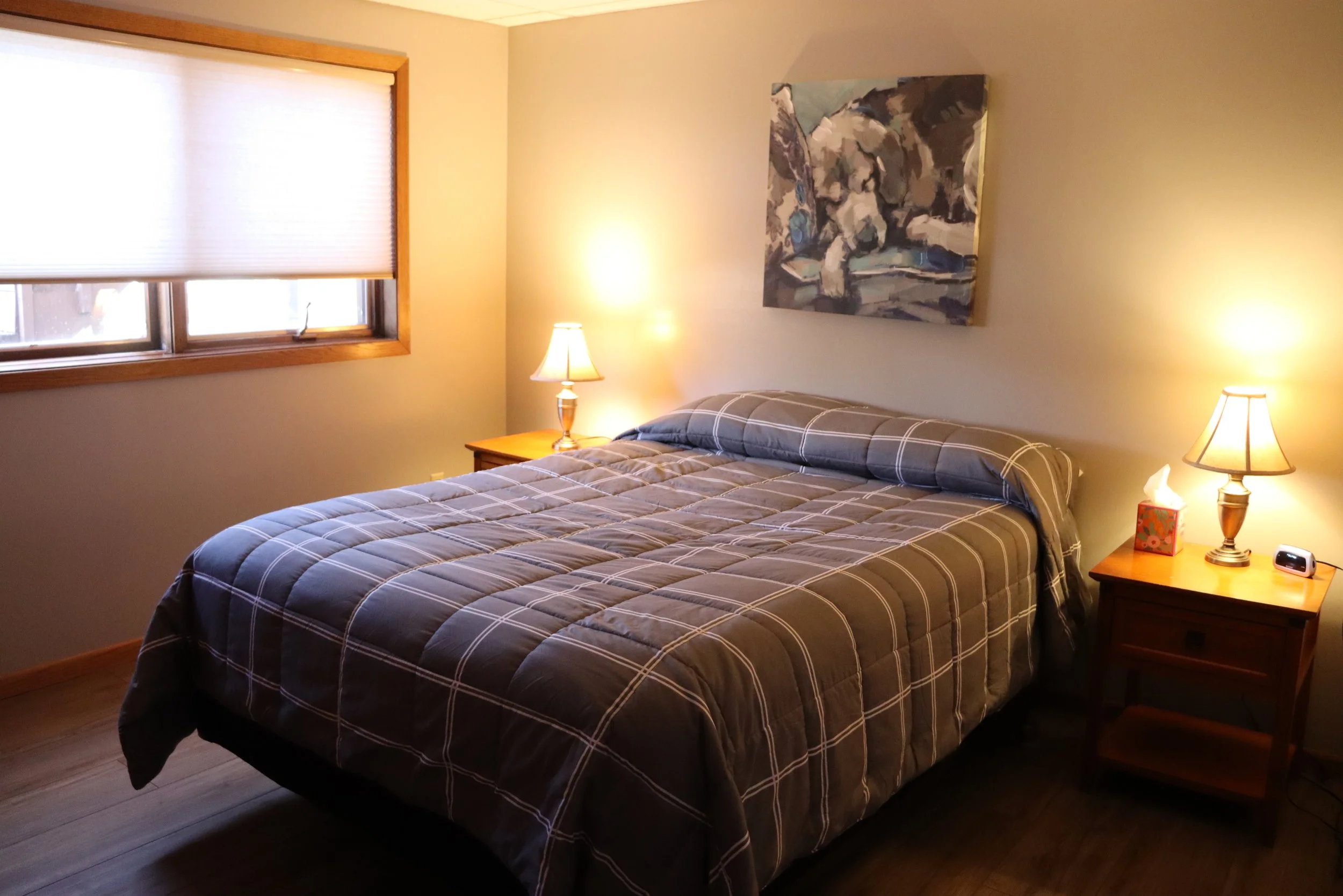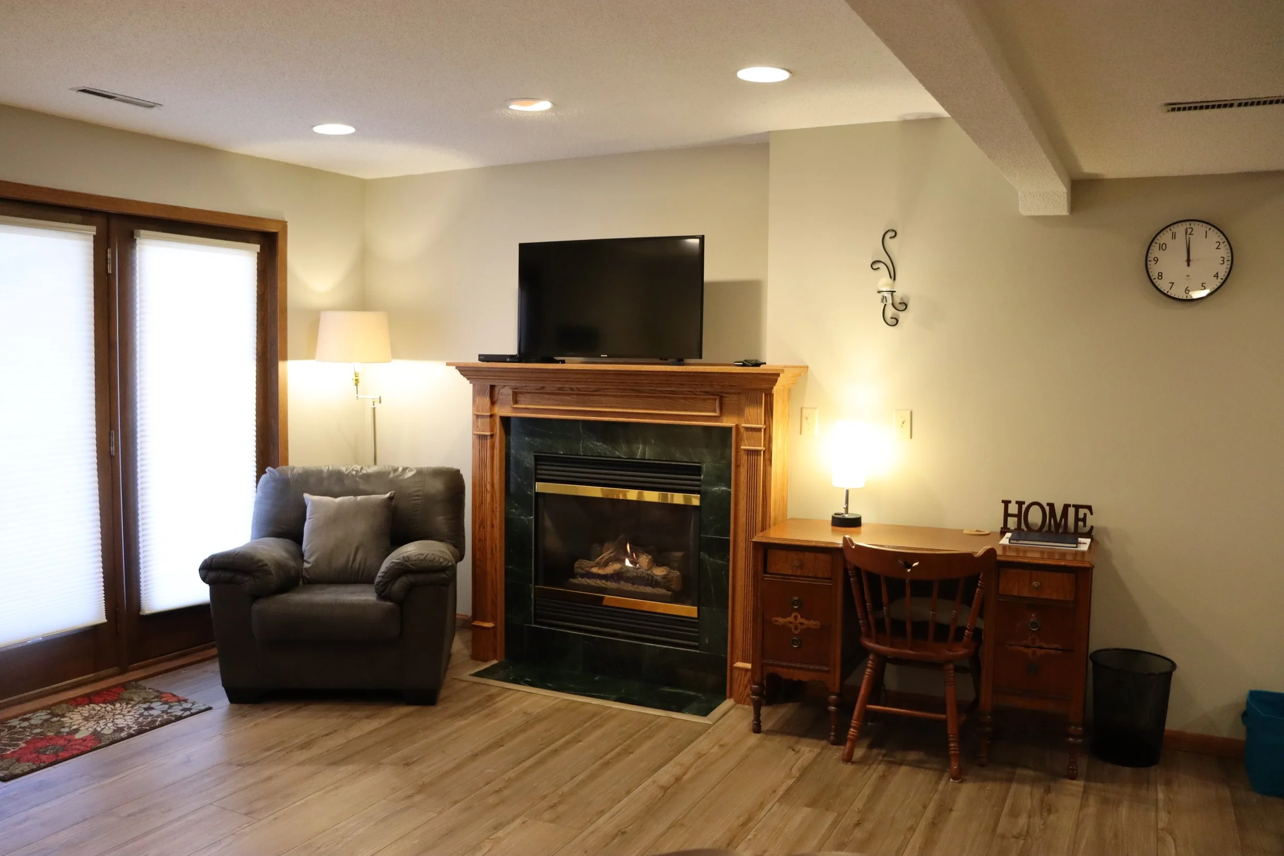 Cy's Place is currently a cozy two-bedroom apartment located in the walk-out basement of Randy and Ree’s home. Wi-Fi, a streaming service, and laundry facilities are available. A sidewalk around the side of the house leads to a private entrance at the back of the property. Enjoy the peace and quiet of the backyard and neighborhood. For availability and scheduling, contact us here or call us at 507-244-2095.